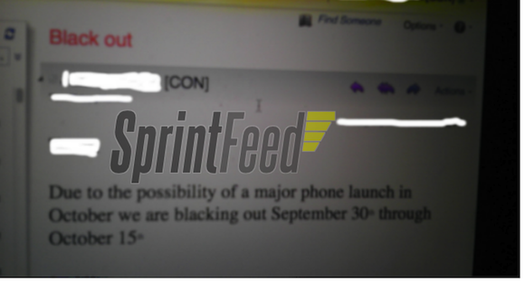 A screenshot found by Sprintfeed within Sprint’s internal systems is showing that Sprint has put a vacation blackout in effect for the first half of October, from September 30th to October 15th, likely in preparation for the iPhone 5.