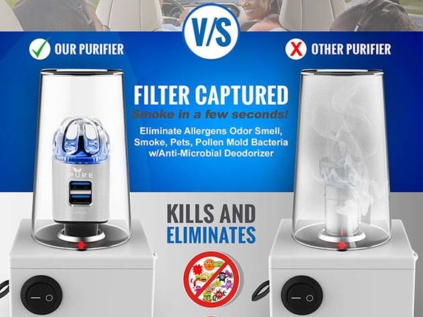 The PURE Car Air Purifier Premium Ionizer & Car Charger purifies with 5,600,000 negative ion concentrations and adopts multi-needlepoint ionization to achieve this higher output and air purification efficiency.