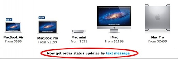 Apple’s Online Store was down for several hours early this morning, and as CultofMac notes, it had a brand new feature when it came back up: Text message shipping notifications! Apple now offers to send text message notifications to customers whenever their order status is updated.