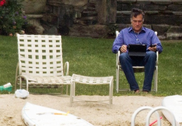 Despite a busy presidential campaign, Republican candidate Mitt Romney still found time to take a break at his Lake Winnipesaukee home, which included spending time using his iPad and iPhone on the shores of the lake, some photos published on Buzzfeed reveal (via MacDailyNews).