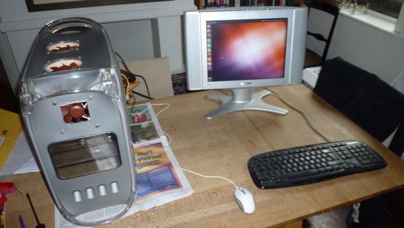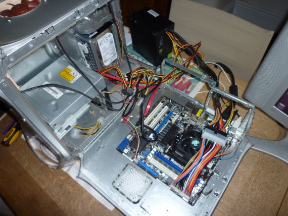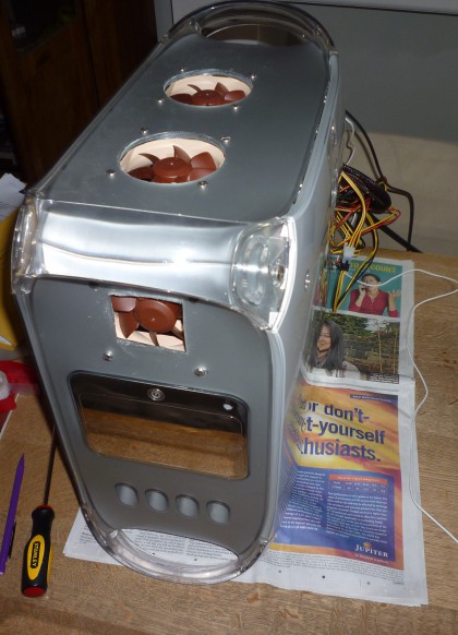 Other issues you will encounter if you mod an PowerMac G4 MDD include getting it to close (you have to cut out a section in the metal stand that holds the optical drive) and the power supply, which I have left outside the case. It doesn’t look pretty at the back, but it’s the best I can do for now as I can’t think of a better way to get it to work.