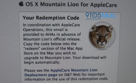 The build number of the seed provided to AppleCare reps also matches the Golden Master build seeded to developers earlier this month. So make sure your Mac is ready, and sit tight – Mountain Lion will be here any day now!