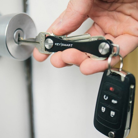 Say goodbye to your annoying, bulky key ring—KeySmart organizes your keys in one convenient, compact, and lightweight place. The included expansion pack lets you easily attach up to 10 keys and is meticulously designed to work with larger international and maintenance-style keys.