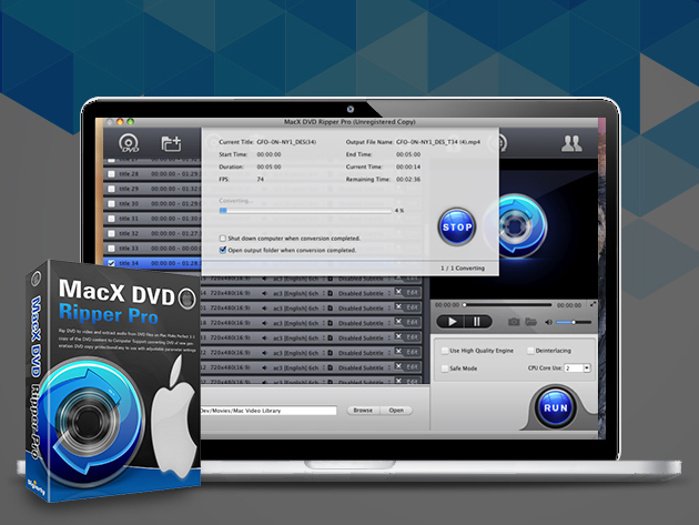 The MacX DVD Video Converter Pro Pack allows Mac users to rip any DVD and convert the resulting video files into a format playable on a Mac, or most iOS and Android devices.