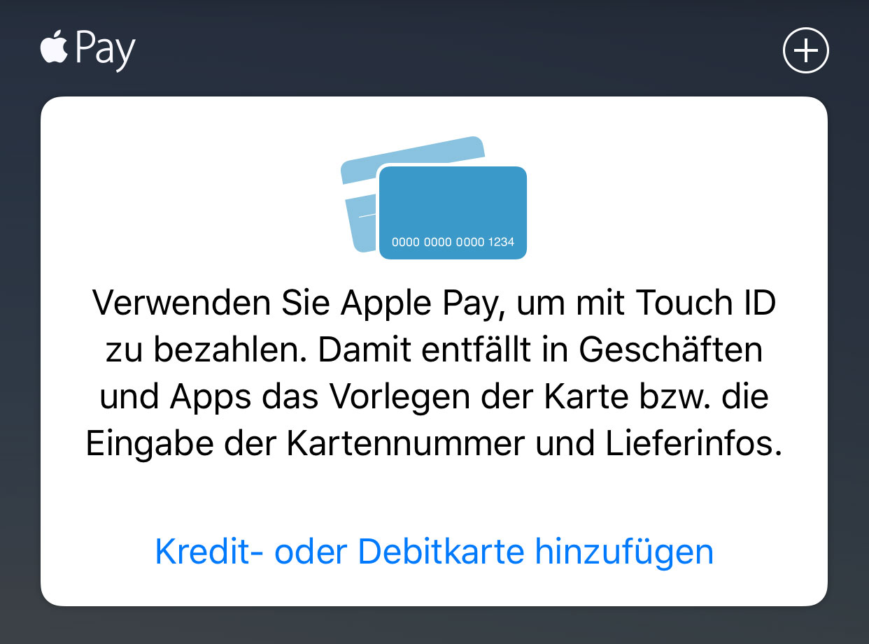- iPhone users running iOS 9 can go to the Wallet app and tap the “+” icon in the upper right-hand corner to begin, and then just follow the prompts. Users of iPads with Touch ID can add a card to the service to use in apps by going into “Settings” -> “Wallet & Apple Pay” to add a card there.