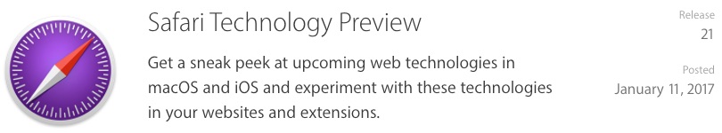Apple on Wednesday released Safari Technology Preview 21, the latest update to their experimental web browser. The browser, which first debuted in March 2016, is designed to allow developers and advanced users to test features that may debut in future public release versions of Safari.
