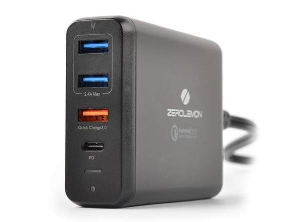 The ZeroLemon 75W Desktop Charger with Quick Charge 3.0 offers a USB Type-C port, 2 standard USB-A ports, & a PD/QC3.0 compatible port.