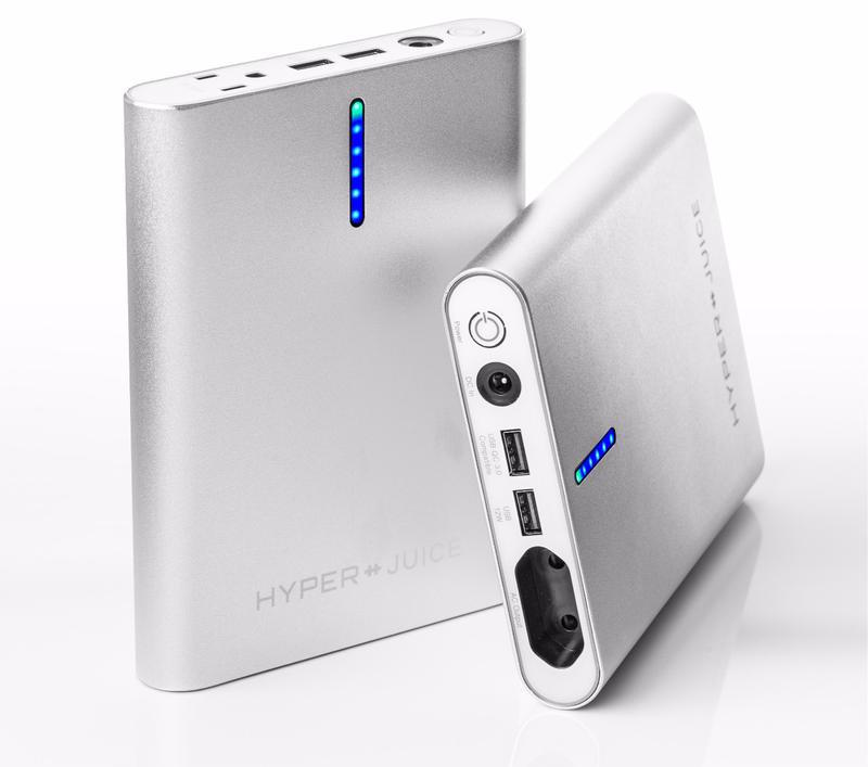 Hyper Juice AC 100Wh 26,000mAh Battery – The Hyper Juice AC 100Wh is the largest battery you can safely take on an airplane for travel. It can juice up your MacBook with its AC power plug, power up QuickCharge 3 enabled devices at full speed and its remaining USB port provides 12 watts and 2.4 Amps.