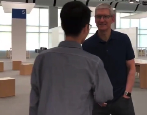 Afterwards, the Scholarship winners were treated to a photo app with Cook, and were afforded the opportunity to demonstrate their apps to him. Cook later tweeted a link to a short video showing the students explaining their current or favorite app.