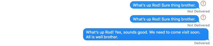Keychain Access can occasionally bug out and create issues. This happens especially when you upgrade your macOS or switch to a new Mac. While the Migration Assistant is an amazing tool, we’ve seen that if you chose to defer dealing with Keychain Access, the Messages app sometimes stops working correctly. You can still receive messages (iMessages as well as SMS), but you’re not able to send messages from your Mac. When you try to send, you will get a red exclamation in a circle saying “message could not be sent, try again.”