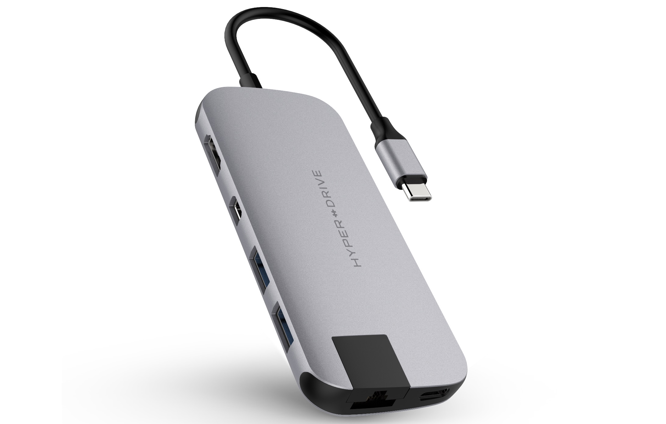 3. HyperDrive $99.99 – The slim 8-in-1 USB-C Hub is the perfect sized device to take with any modern MacBook, MacBook Pro or PC with a USB-C port. It turns one USB-C port, the MacBook only comes with one, and it adds 8 ports. It includes a 4K/30Hz HDMI & Mini DisplayPort, Dual USB-A 3.0 5Gbps ports, Gigabit Ethernet, USB-C 100W Power Delivery for power pass through, and SD + microSD UHS-1 104MB/s speed.