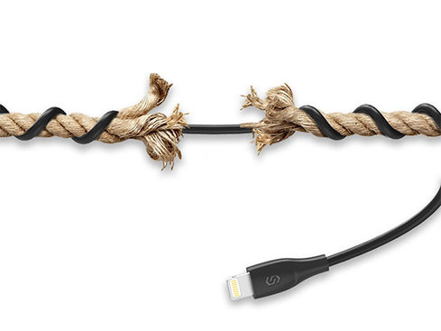 The Syncwire UNBREAKcable is a heavy-duty cable that features a tinplate interior, a TPE jacket exterior, and wrapped internal wires to prevent friction or fraying.