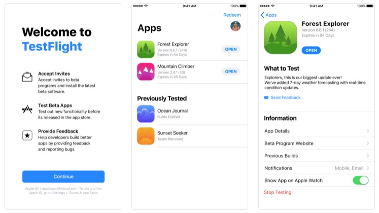TestFlight is available as a free download on iOS, Apple Watch, and Apple TV devices.