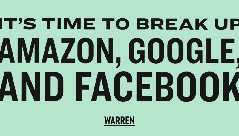 “Apple, you’ve got to break it apart from their App Store. It’s got to be one or the other,” Warren said when specifically asked about Apple. “Either they run the platform or they play in the store. They don’t get to do both at the same time. So it’s the same notion.