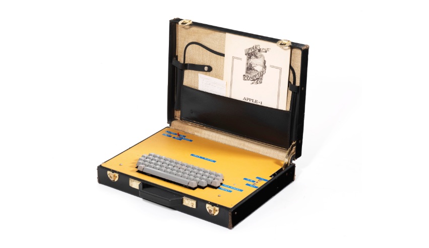 The hand-built board – assembled in 1976, and believed to be part of an original batch of Apple-1 units sold through Mountain View, Calif., computer store Byte Shop – is housed in the bottom section of a briefcase, and is hidden by a Datanetics keyboard.