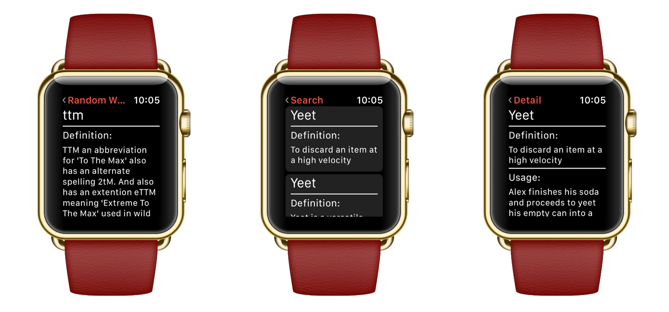 UrbanWatch is a full-featured Urban Dictionary client for the Apple Watch and recently released version 2.0.1.