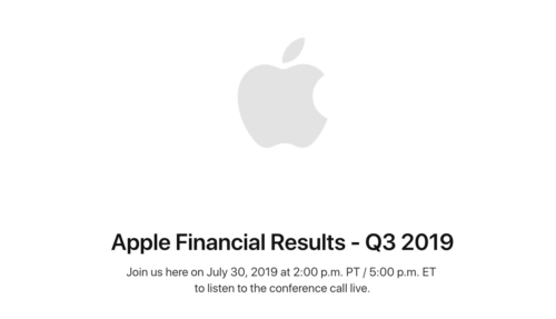 Apple today announced it will share its earnings results for the third fiscal quarter (second calendar quarter) of 2019 on July 30, 2019 at 2:00 p.m. Pacific Time / 5:00 p.m. Eastern Time.