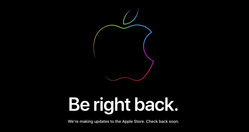 Visitors to the online store are greeted by a “Be right back” notice informing shoppers “We’re making updates to the Apple Store. Check back soon.” An animated Apple logo accompanies the notice.
