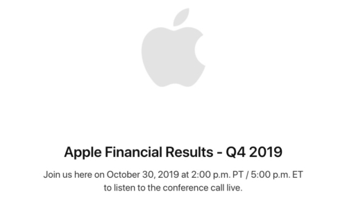 Apple on Monday updated its investor relations page to announce the company will share its fiscal fourth quarter 2019 earnings on Wednesday, October 30.
