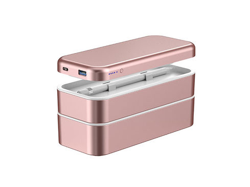 BentoStack Charge takes the original BentoStack and adds power! Inspired by the modern Japanese lunchbox, the BentoStack Charge is a delightful storage case designed specifically to hold Apple accessories and keep them organized on the road and on your workspace. Now with a Qi-certified wireless charger and 5,000 mAh battery built into the Top Cover, you can keep your iPhone, Apple Watch, and the like powered up without hunting for an outlet. All compartments stack neatly together with a premium silicone band keeping everything secure when going mobile. For lighter travel, take just a single compartment with you; an extra smaller strap is included for this configuration.
