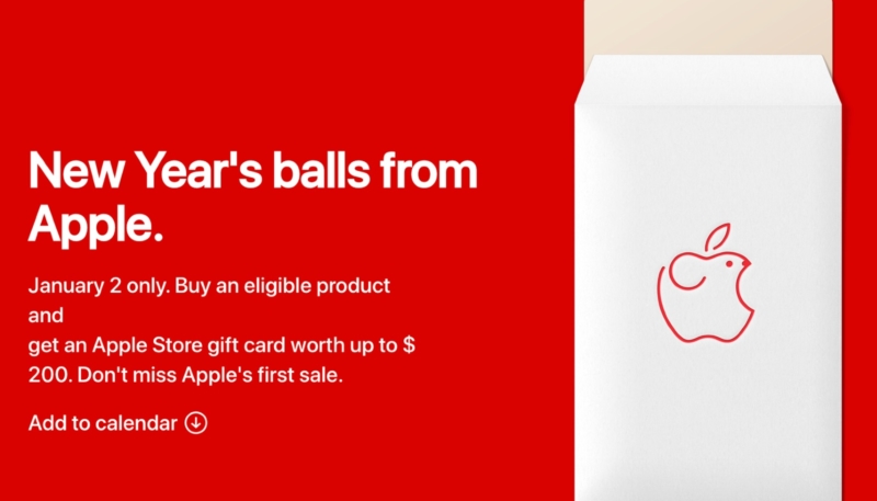January 2 only. Buy an eligible product and get an Apple Store gift card worth up to $ 200. Don’t miss Apple’s first sale.