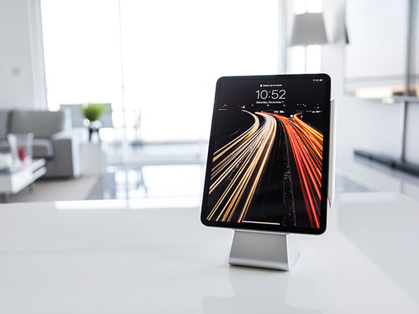 Slope is a unique universal tablet stand with a patented design. Its design allows it to work virtually any tablet that has a flat metal back (not recommended for tablets with a glass back). It has the same brushed and anodized finish as a Macbook and blends in perfectly with the Apple ecosystem. Slope employs a unique suction technology. Its two pads are comprised of a special type of nano-foam with thousands of microscopic air pockets across its surface that act like tiny suction cups. Pressing an object with a flat surface against the nano-foam forces air out of the pockets creating a vacuum and strong grip. The pads can be cleaned with water if and when they lose grip.
