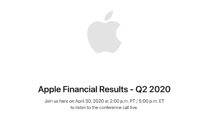 Apple on Tuesday announced it will share fiscal second quarter (first calendar quarter) 2020 earnings results on Thursday, April 30.