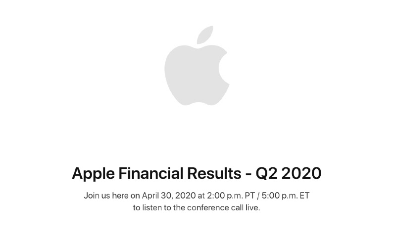 Apple on Tuesday announced it will share fiscal second quarter (first calendar quarter) 2020 earnings results on Thursday, April 30.