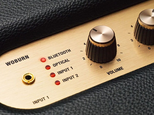 Just like the glory days of rock ‘n’ roll, the Woburn speaker is all about freedom, allowing you to play your favorite music multiple ways. With unique sound design and quality components, the Woburn is built to thrill. This 110dB Bluetooth loudspeaker hits high trebles cleanly, handles low bass with ease, and has a clear and lifelike mid-range. Woburn’s top brass plate features controls for bass, treble, and volume. The custom control analog interaction knobs allow you to fine-tune to the exact sound you desire. With its gold script logo, gold piping, vinyl casing, and vintage-inspired fret grille cloth, the Woburn is an instant classic that harkens back to over 50 years of Marshall design and heritage.