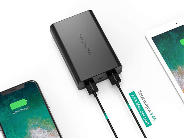 The RAVPower 10,000mAh Dual Port Power Bank contains 10,000mAh power in a compact body, allowing users to refuel their 2 devices simultaneously anytime, anywhere.