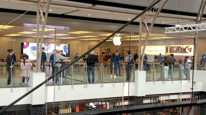 Twitter user @TwoOneOink tweeted photos of an Apple Store reopening in Australia: