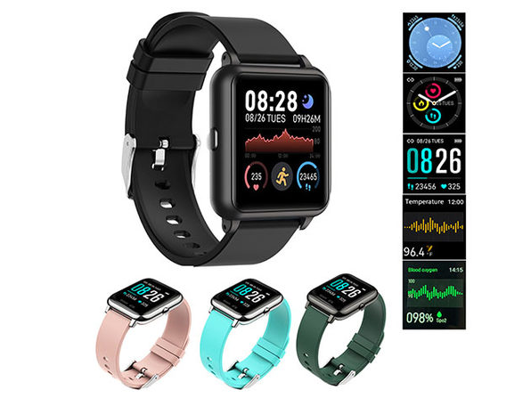The OXITEMP Smart Watch with Live Oximeter offers the standard fitness functions of other smart watches, and also offers live temperature, blood oxygen, and health tracking.