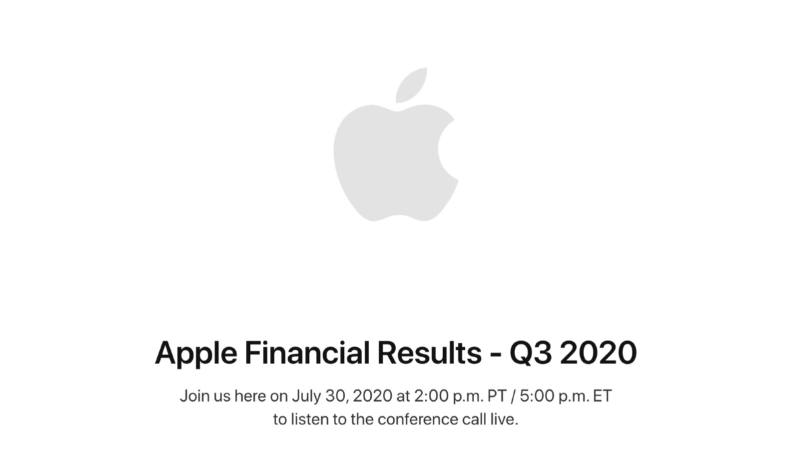 Apple has announced that it will report its fiscal third-quarter 2020 earnings results on Thursday, July 30.