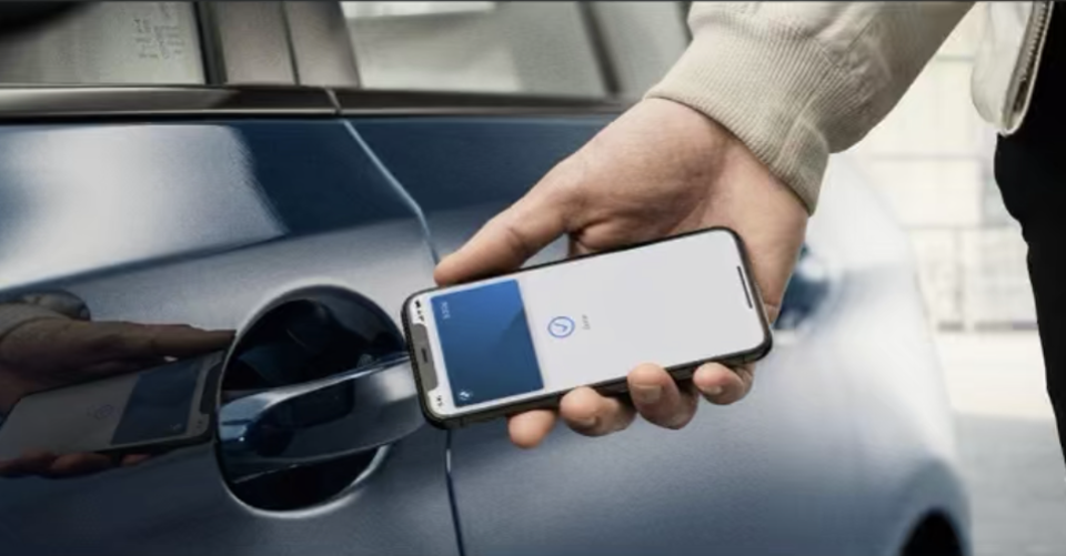 The feature allows users to hold their iPhone up to the door handle, and can also start the car when the iPhone is placed in the smartphone tray in the vehicle, Users can share access to the car with up to five friends or family members.