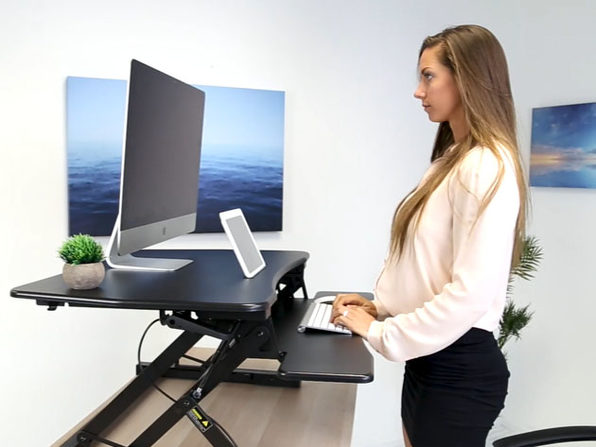 The Mount-It! Height Adjustable Sit-Stand Desk Converter – Simply place this desk converter on top of your existing desk, and enjoy working comfortably from either a sitting or standing position.