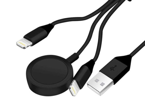 With one cord, now you can charge two Lightning devices and your Apple Watch all at the same time! With one cord plugged into one power outlet, this cable lets you charge an iPhone, iPad, iPod, or any Lightning devices plus your Apple Watch at the same time. Certified by CE/ROSH, this 3-in-1 charger has over-current, over-heat, and short-circuit protection, giving your devices convenient and safe charging.