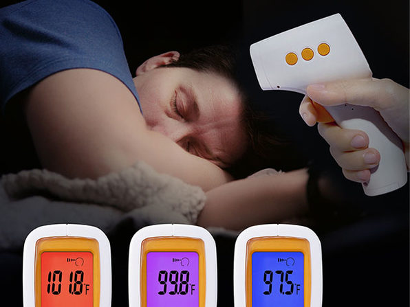 - 3-Color Indicator Light. Blue for normal body temperature, Purple for low fever, Red for high fever