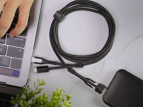 The CharbyEdge Pro 6-in-1 Universal Cable will charge your Macbook Pro/Air, iPhone, iPad, Android Phones, or even wireless earphones.