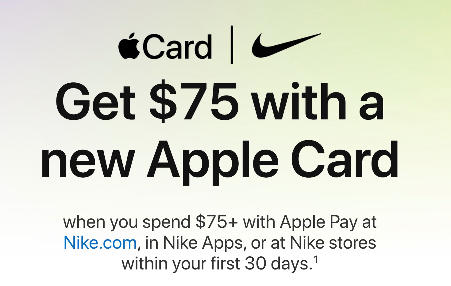 New Apple Card customers can get $75 cash back when they spend $75 or more on Nike products in their first 30 days of being a card member. Nike is sending promo emails out today, and the deal is also laid out on the Apple Card website.