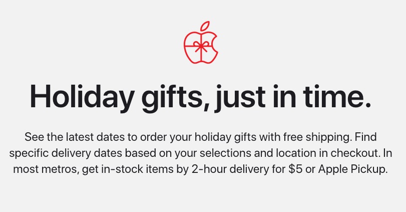 Be sure to check the delivery options for each item in your area, as options vary. For more information on whether an item can be delivered to you using standard shipping before Christmas, check Apple’s holiday shipping page.