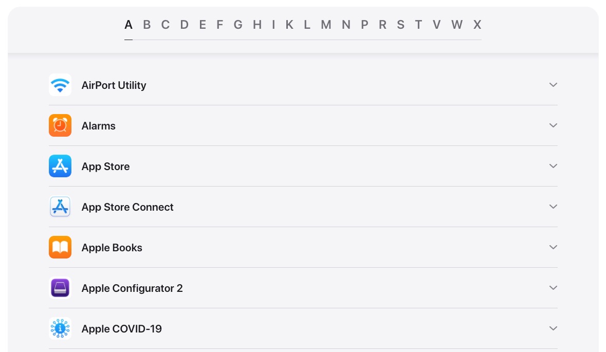 Although Apple had already posted privacy labels for its apps, they were on individual support pages. The new “Labels” section allows users to view the labels in one location, listed in alphabetical order.