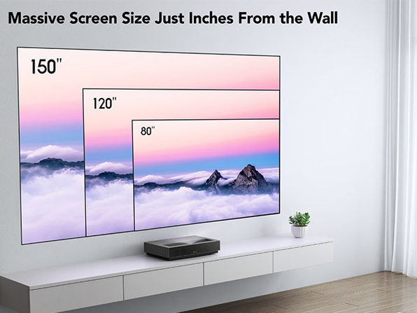 - Massive Screen Size. Up to 150″ screen for the best viewing experience