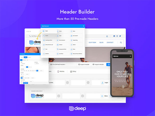 Deep® Multi-Purpose Theme for WordPress provides you with 120 different and pre-built demos that cover a wide range of applications from restaurants or churches to online shops and finance or law firms.