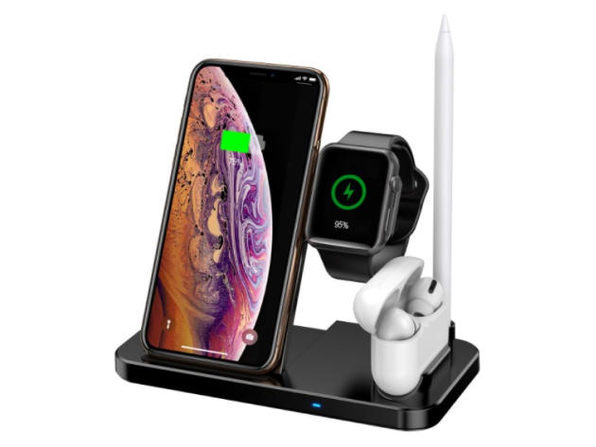 The 4-in-1 Foldable Wireless Charging Station has two wireless charging areas for your wireless-enabled Apple or Android smartphones. The 2W wireless surface is for Apple Watch 1/2/3/4/5 while the 3W built-in connector is for charging your AirPods 1, 2, or Pro.