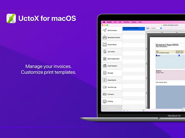 UctoX Invoicing Software for Mac lets you manage your bank statements, cash register, storage, journey log, and much more!