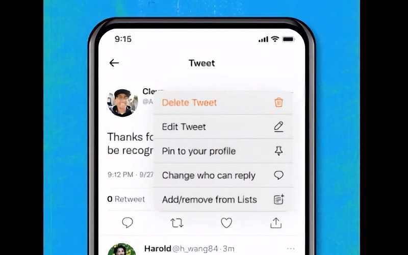 The “Edit Tweet” option is now available alongside the already available Delete Tweet, Pin to Profile, Change who can reply, and Add/remove from Lists options.