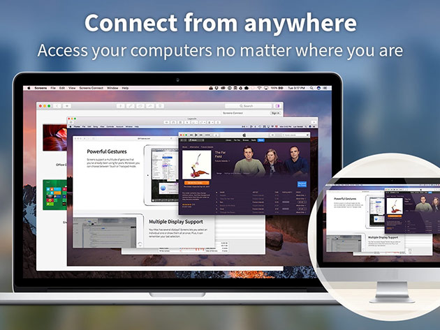 - Connect from anywhere. Install Screens Connect & access your files from anywhere in the world