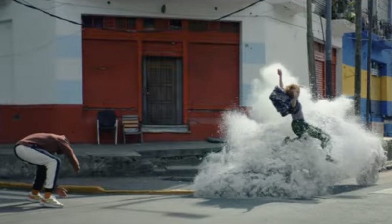 As the pair romp through the city, they turn various objects into snow (including a bus) and at the end of the ad spot, they both vanish into a cloud of snow.