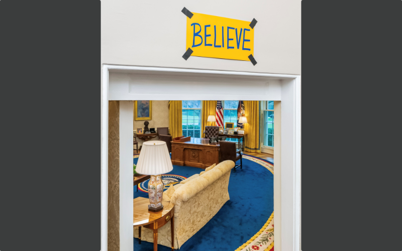 The announcement was initially promoted by the U.S. President’s Instagram account, which shows the famous “Believe” sign taped above the doorway into the Oval Office, captioned simply, “Tomorrow,” pointing to a Monday event shortly before Apple officially confirmed the meeting.