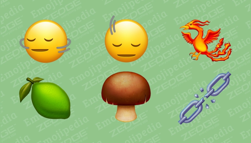 The approved Unicode 15.1 emoji include a phoenix, a lime, an edible mushroom, a shaking head vertically (as in a “yes” nod), a shaking head horizontally (a “no” head shake), and a broken chain.